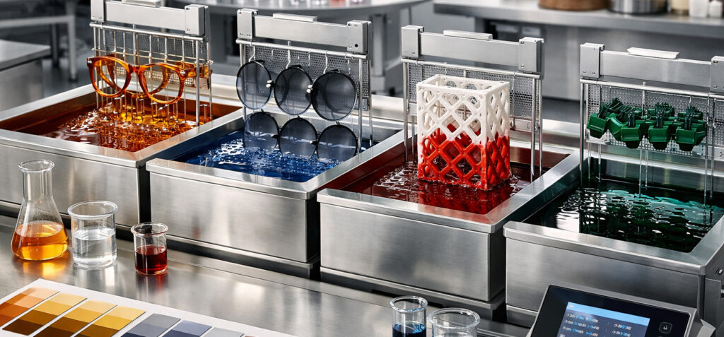 ✅ Unsere Färbelösungen für organische Gläser, die präzise und langlebige Farben bieten.